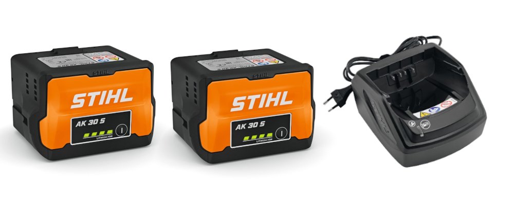 Zamieszczony zestaw obejmuje dwa akumulatory Stihl AK 30S oraz ładowarkę model AL 101. Każda z baterii charakteryzuje się pojemnością wynoszącą 5,2 Ah, co pozwala na kilkadziesiąt minut nieprzerwanej pracy. Dzięki dostarczonej ładowarce, jesteśmy w stanie kontynuować koszenie trawy, korzystając z jednego z akumulatorów, podczas gdy drugi może być równocześnie ładowany, przygotowując się do kolejnego użycia. Ponadto, akumulatory wyposażone są w wskaźnik LED, który informuje nas o poziomie naładowania każdego z nich.