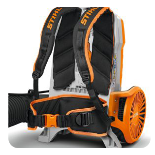 Ergonomiczny system nośny z wygodnymi pasami naramiennymi, pasem biodrowym oraz z umiejscowieniem środka ciężkości akumulatora plecaka AR L blisko ciała gwarantuje optymalne rozłożenie ciężaru. Do pracy wymagającej długiego czasu i pełnej mocy nadmuchu szczególnie polecany jest akumulator plecakowy STIHL AR 3000 L.