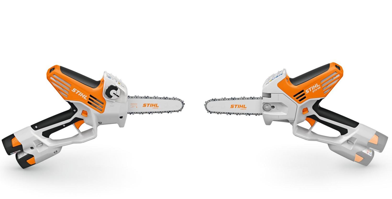 Zamontowany z przodu deflektor w kształcie pazura wyraźnie oddziela uchwyt od zestawu tnącego, zwiększając bezpieczeństwo zarówno wizualnie, jak i dotykowo. Model STIHL GTA 40 oferuje także szereg praktycznych rozwiązań, takich jak obustronny system odblokowania, szczególnie wygodny dla użytkowników leworęcznych, płynną regulację prędkości łańcucha, osłonę zębatki z bocznym napinaczem łańcucha oraz czytelny wskaźnik naładowania LED.