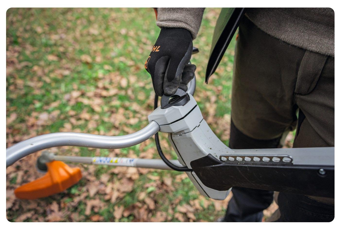 Ergonomiczny uchwyt oburęczny w połączeniu z systemem antywibracyjnym daje swobodę ruchów, zmniejsza zmęczenie i zapewnia komfort podczas koszenia dużych powierzchni. Bezpieczny rozruch zapobiega przypadkowemu włączeniu urządzenia, a kompatybilność ze STIHL Smart Connector 2A pozwala przesyłać dane pracy do aplikacji, kontrolować eksploatację i planować konserwację.