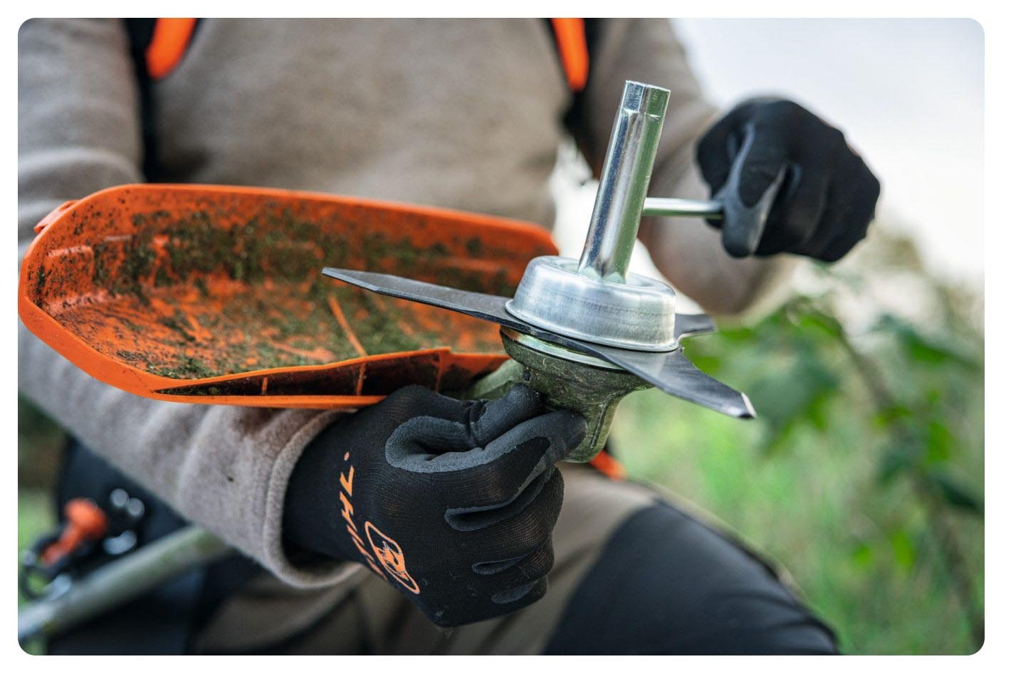 Urządzenie współpracuje z różnymi głowicami koszącymi, w tym energooszczędną STIHL PolyCut 48-2 w standardzie, oraz z metalowymi narzędziami dodatkowymi, takimi jak trójząb, nóż ShredCut 270-2 czy piła tarczowa WoodCut HP. Wszystkie elektronarzędzia akumulatorowe systemu STIHL AP są przystosowane do profesjonalnego użytku w trudnych warunkach pogodowych i posiadają certyfikat bryzgoszczelności IPX4, potwierdzony wymagającymi testami wewnętrznymi.