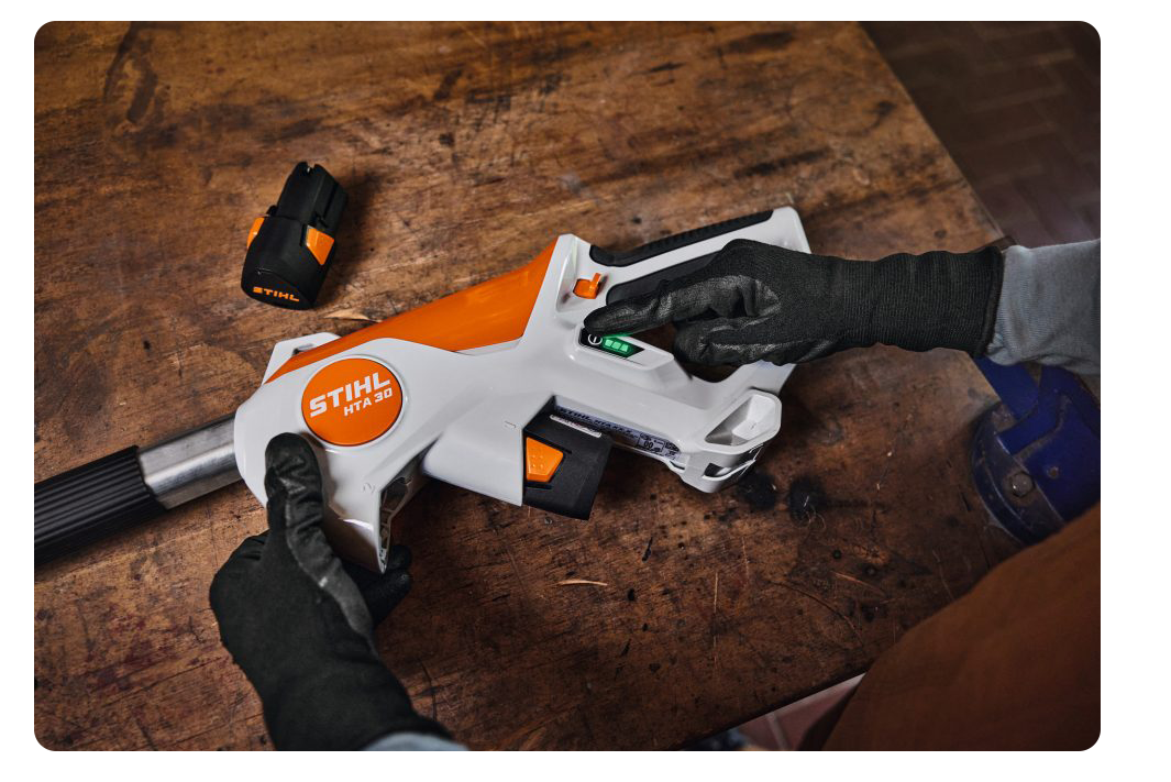 STIHL HTA 30 została zaprojektowana z myślą o maksymalnej prostocie obsługi i komforcie pracy. Sterowanie odbywa się za pomocą ergonomicznego uchwytu z elementami softgrip oraz wygodnym systemem odblokowania, co zapewnia pewny chwyt i pełną kontrolę nad urządzeniem. Dodatkowo gumowana osłona wysięgnika umożliwia elastyczne chwytanie na całej jego długości, w zależności od wysokości i pozycji pracy.